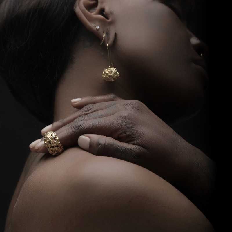 Este pendiente de la Colección Roca, está realizado a partir de un molde, lo que quiere decir que pertenece a una serie limitada de piezas, es una de las pocas piezas que no son únicas.